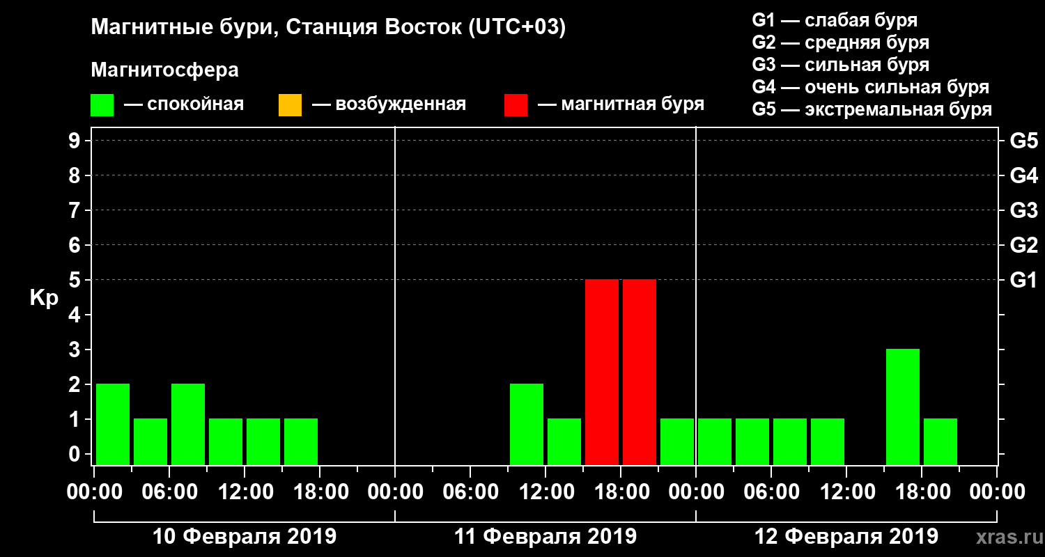 Магнитные бури локации Станция Восток — 12 февраля 2019 года