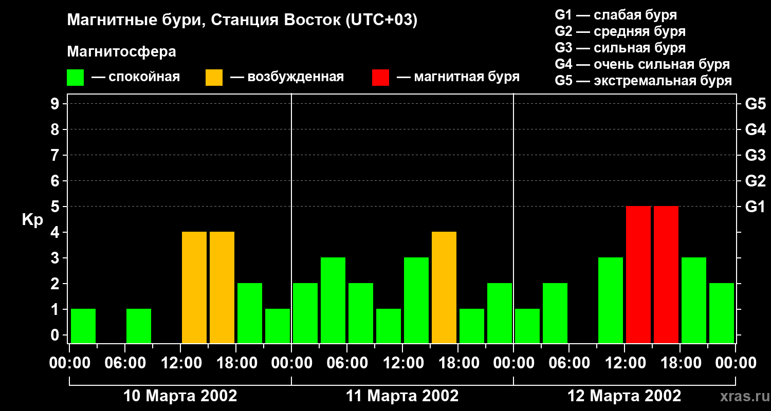 Магнитные бури локации Станция Восток — 12 марта 2002 года