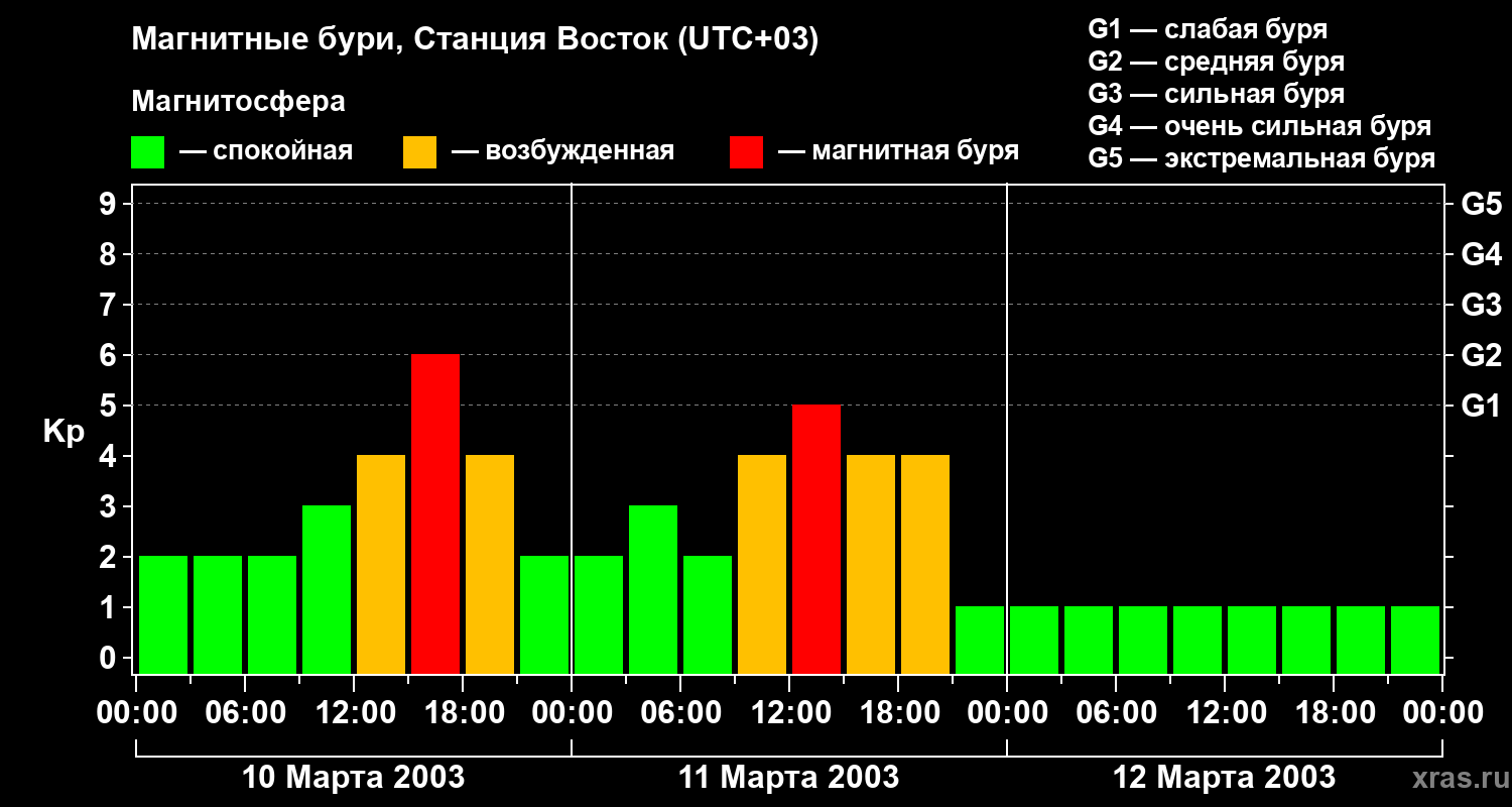 Магнитные бури локации Станция Восток в марте 2003 года