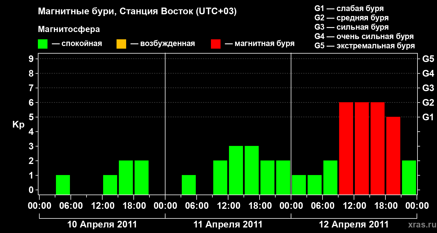 Магнитные бури локации Станция Восток — 12 апреля 2011 года