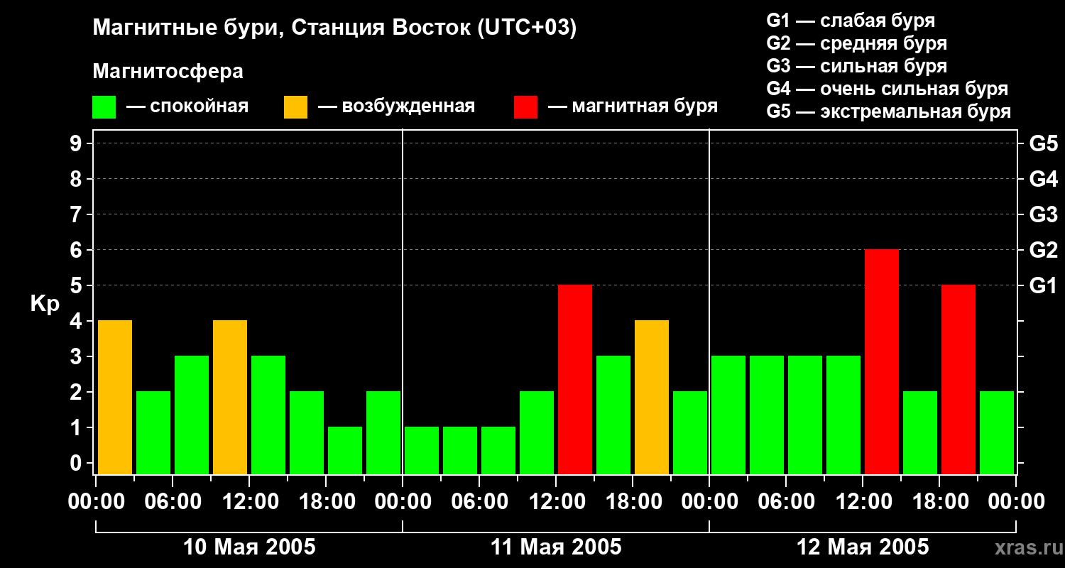 Магнитные бури локации Станция Восток — 12 мая 2005 года