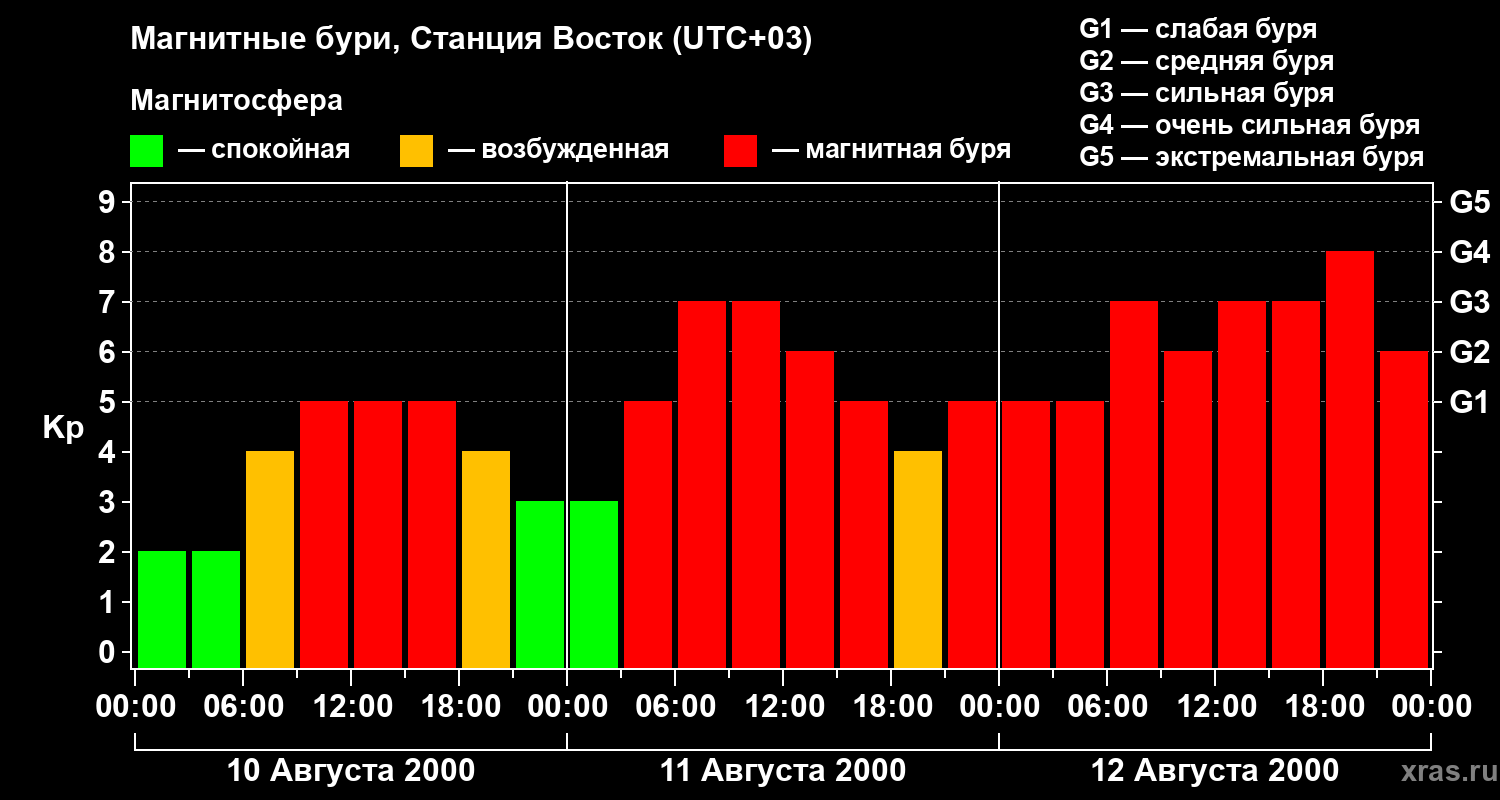 Магнитные бури локации Станция Восток — 12 августа 2000 года