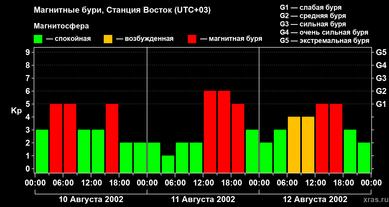 Магнитные бури локации Станция Восток 12 августа 2002 года