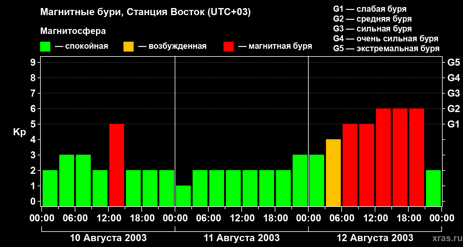 Магнитные бури локации Станция Восток — 12 августа 2003 года