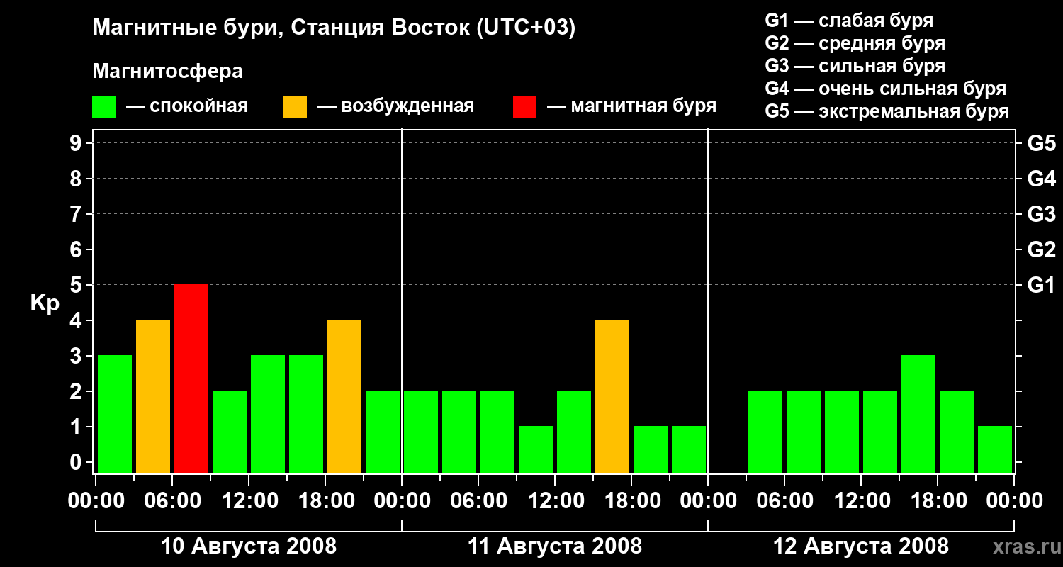 Магнитные бури локации Станция Восток — 12 августа 2008 года
