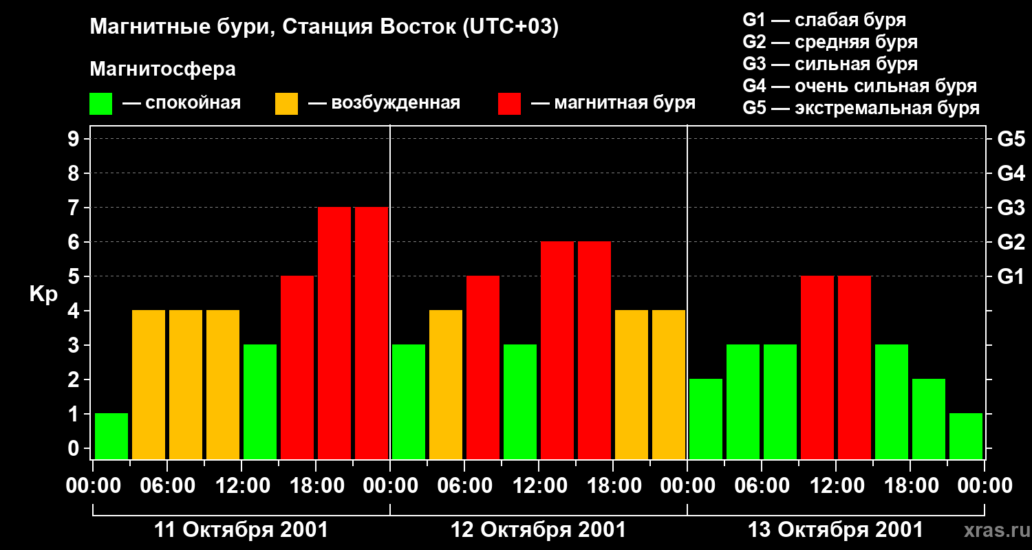 Магнитные бури локации Станция Восток — 13 октября 2001 года