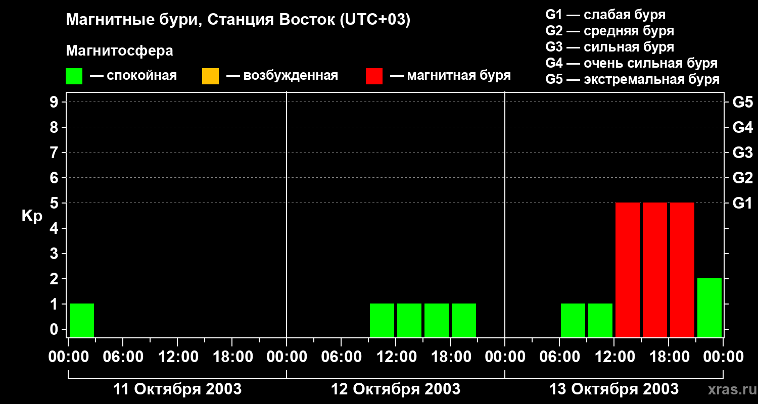 Магнитные бури локации Станция Восток — 13 октября 2003 года