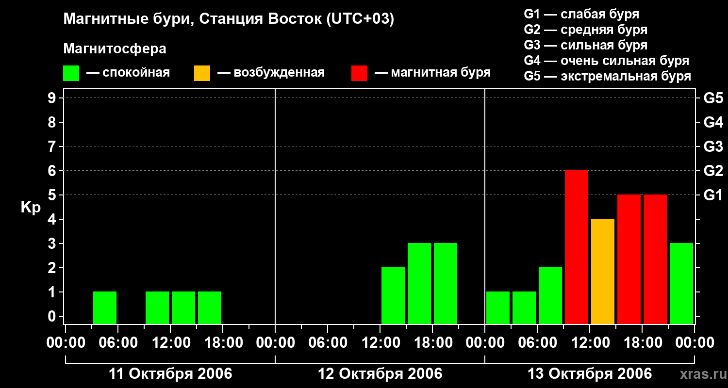 Магнитные бури локации Станция Восток — 13 октября 2006 года
