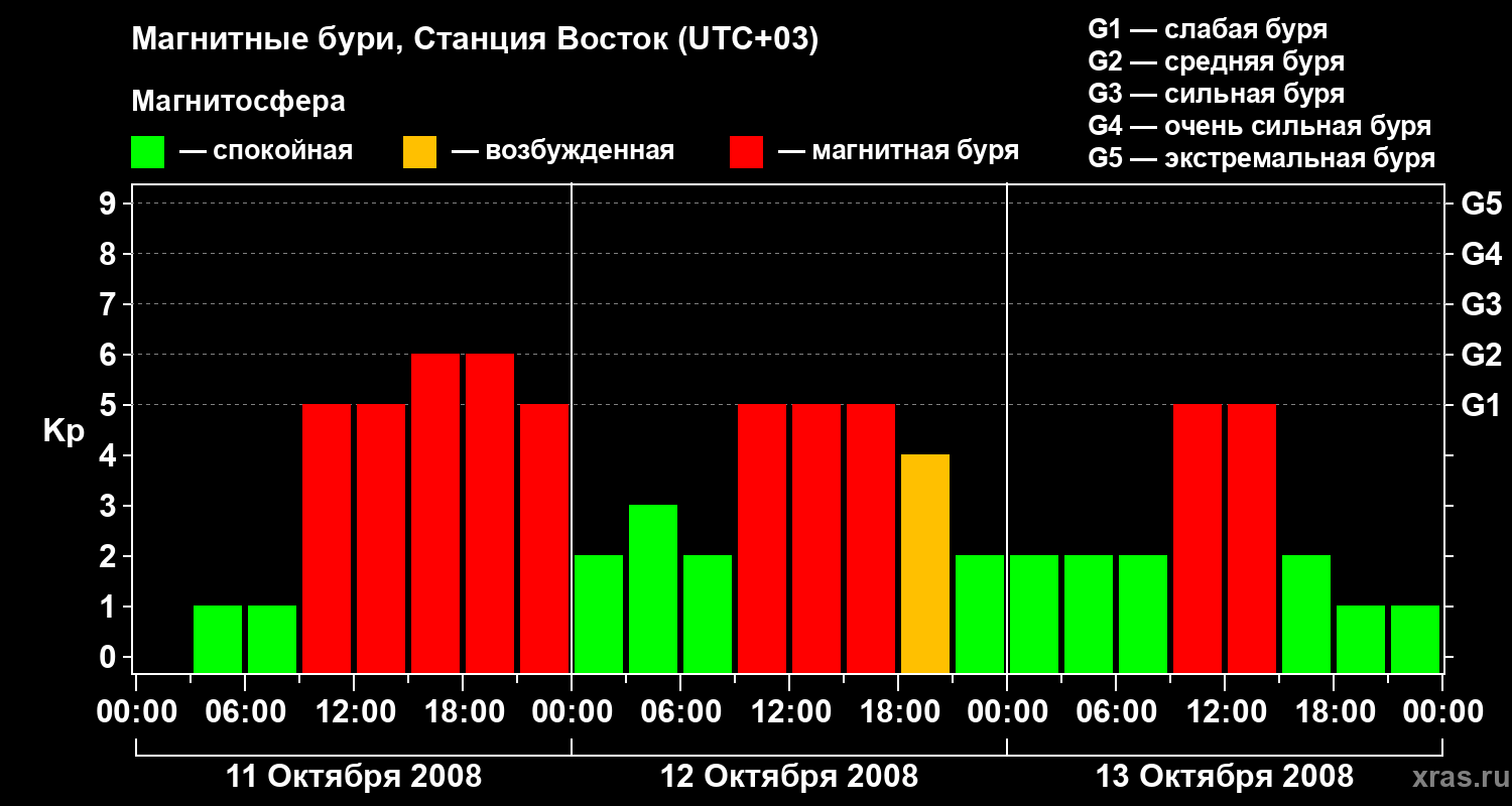 Магнитные бури локации Станция Восток — 13 октября 2008 года