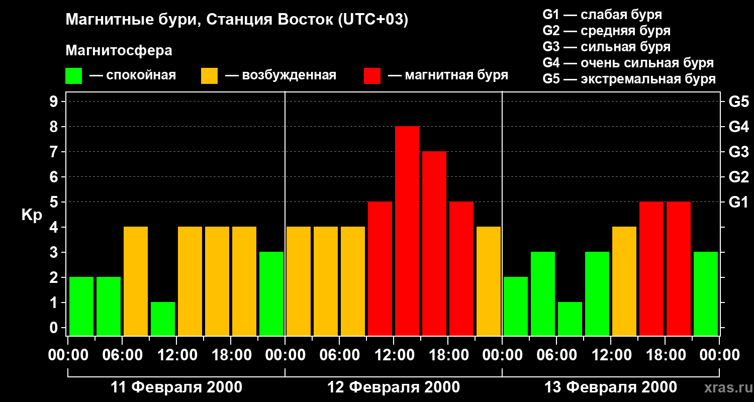 Магнитные бури локации Станция Восток — 13 февраля 2000 года