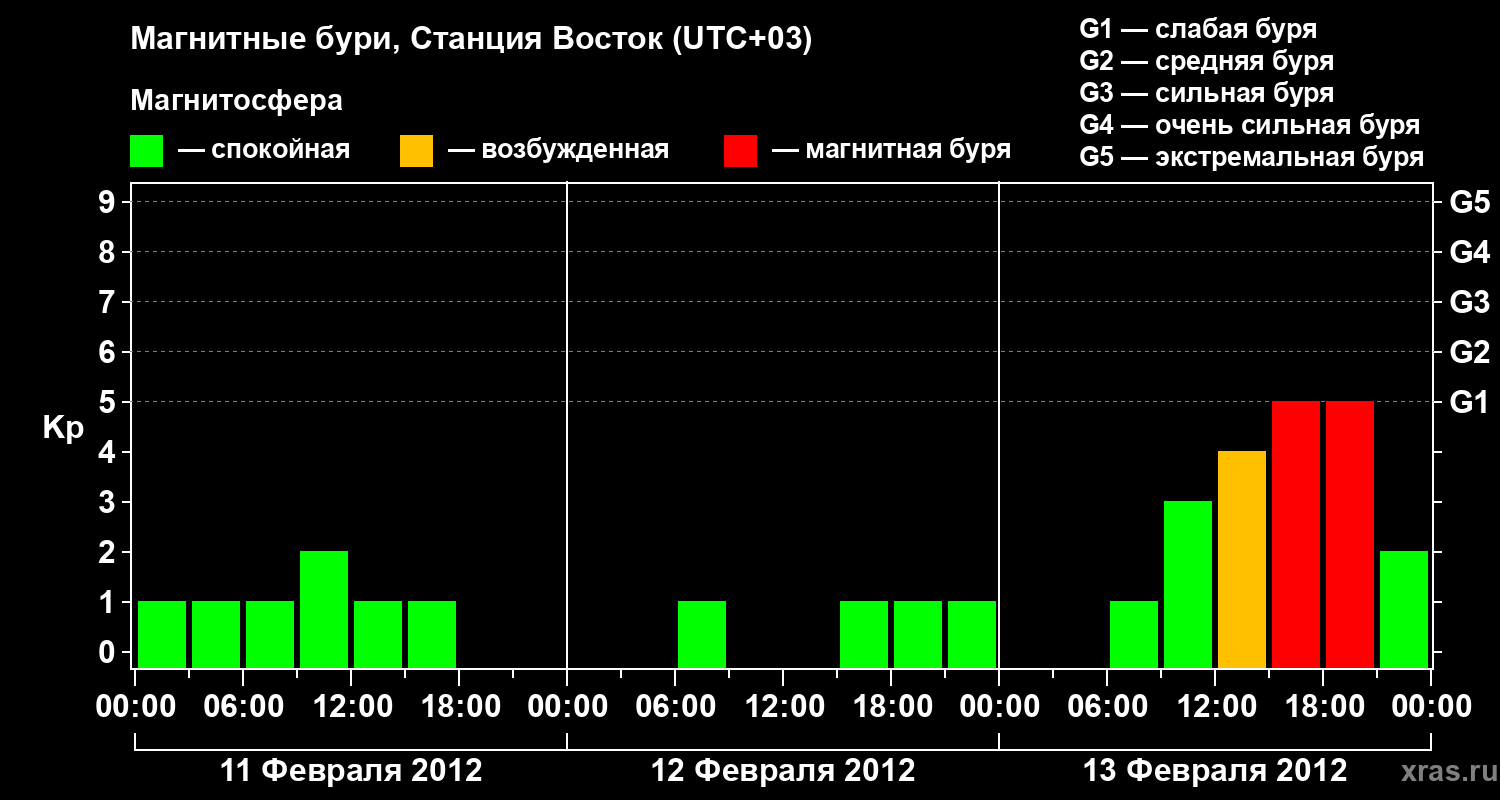 Магнитные бури локации Станция Восток — 13 февраля 2012 года