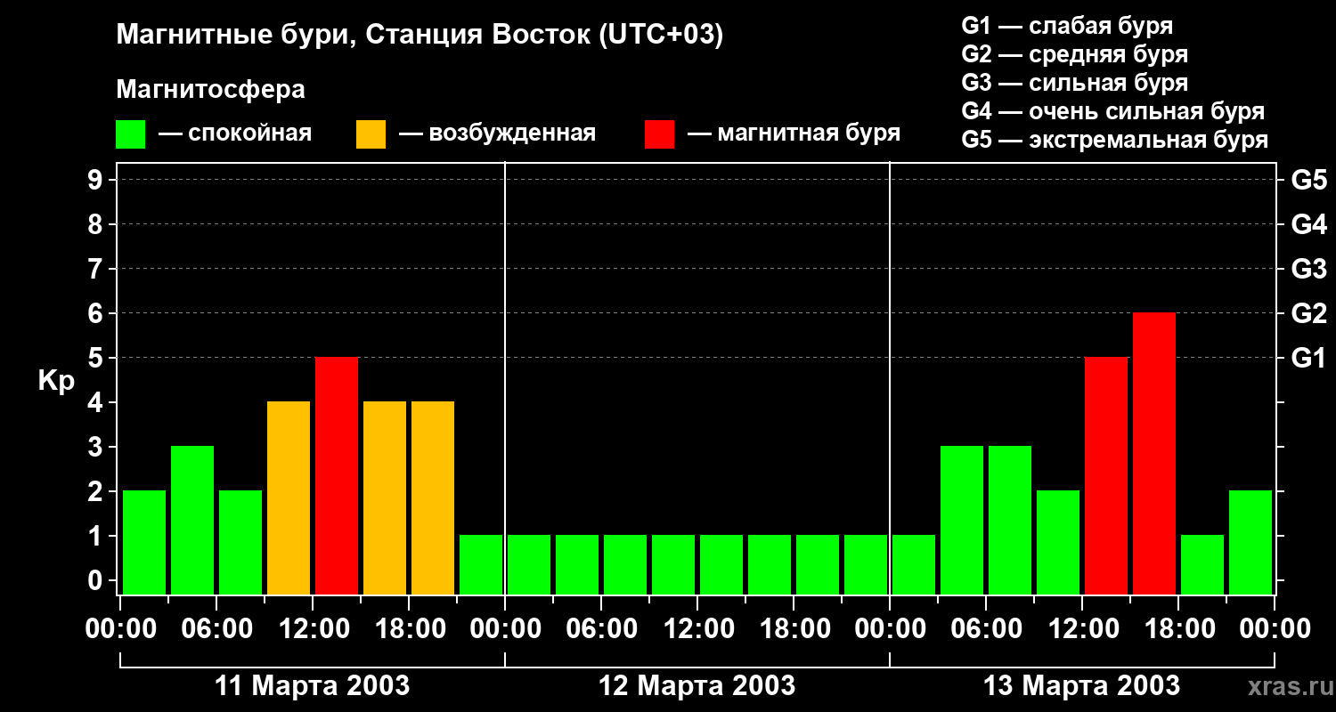 Магнитные бури локации Станция Восток — 13 марта 2003 года
