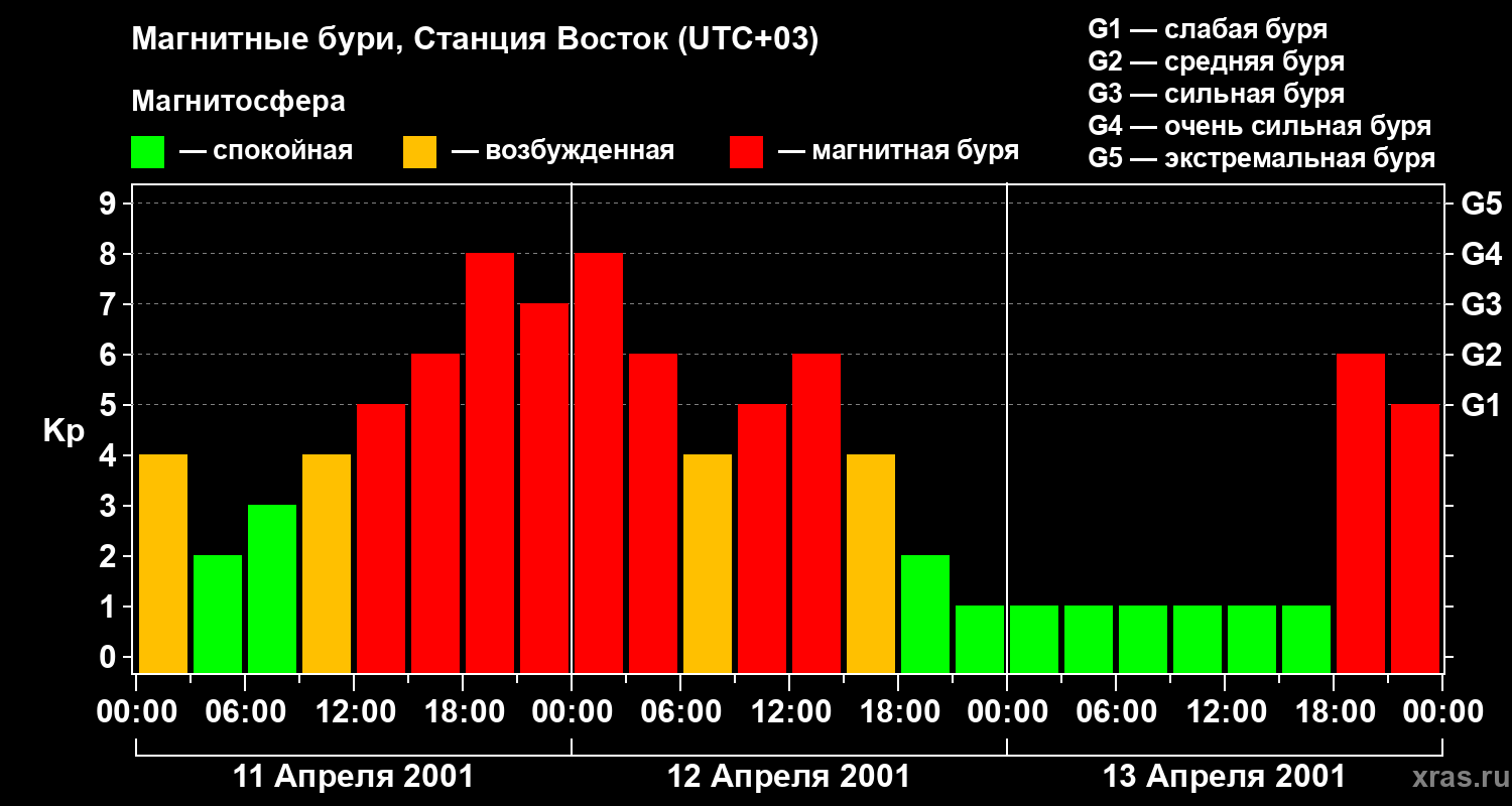Магнитные бури локации Станция Восток — 13 апреля 2001 года