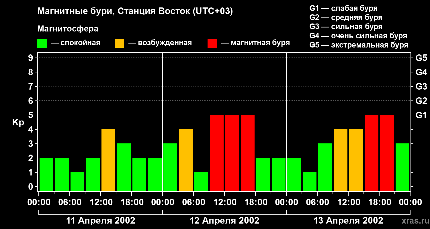 Магнитные бури локации Станция Восток — 13 апреля 2002 года