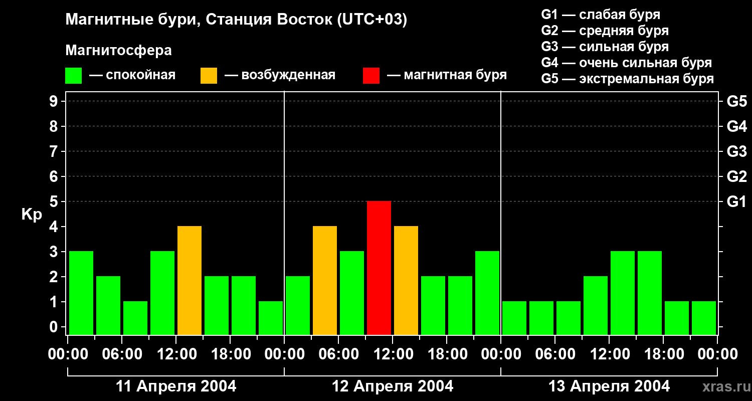 Магнитные бури локации Станция Восток — 13 апреля 2004 года