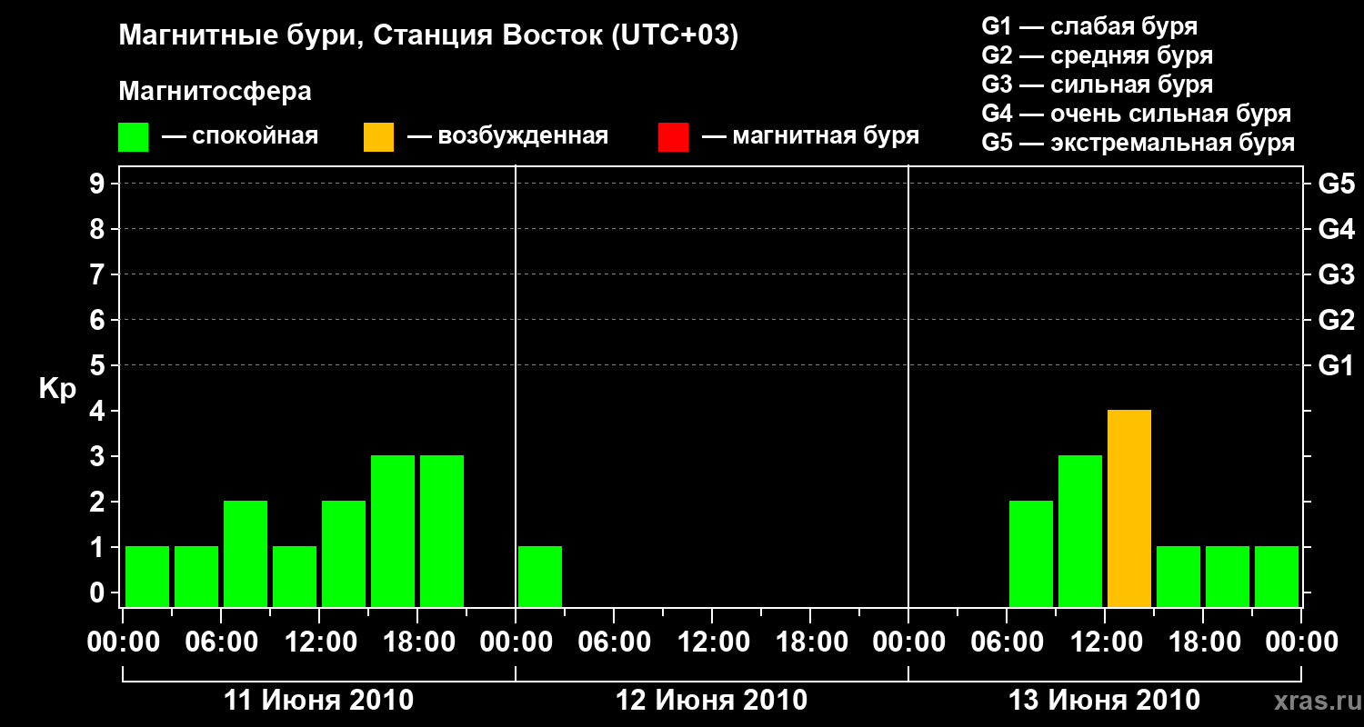 Магнитные бури локации Станция Восток — 13 июня 2010 года