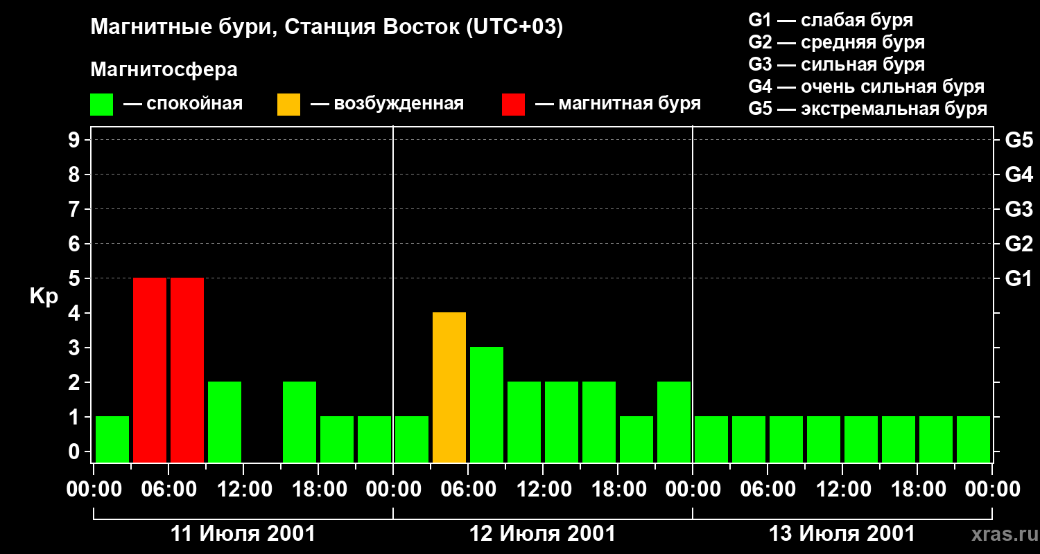 Магнитные бури локации Станция Восток — 13 июля 2001 года