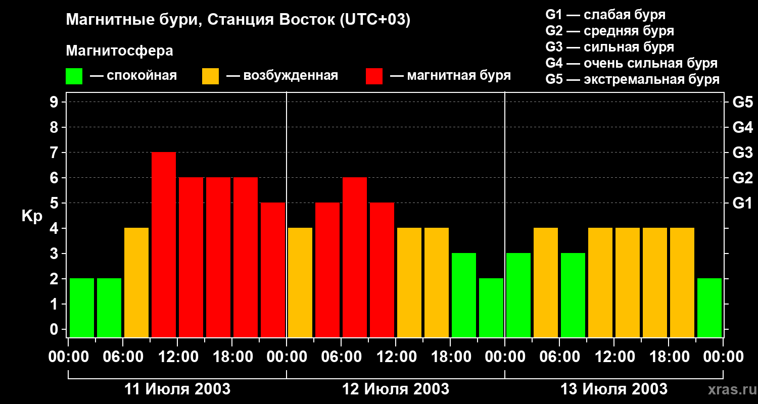Магнитные бури локации Станция Восток — 13 июля 2003 года