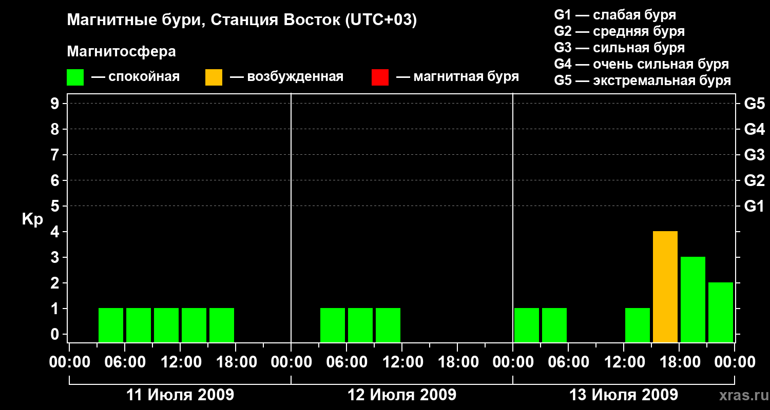 Магнитные бури локации Станция Восток — 13 июля 2009 года