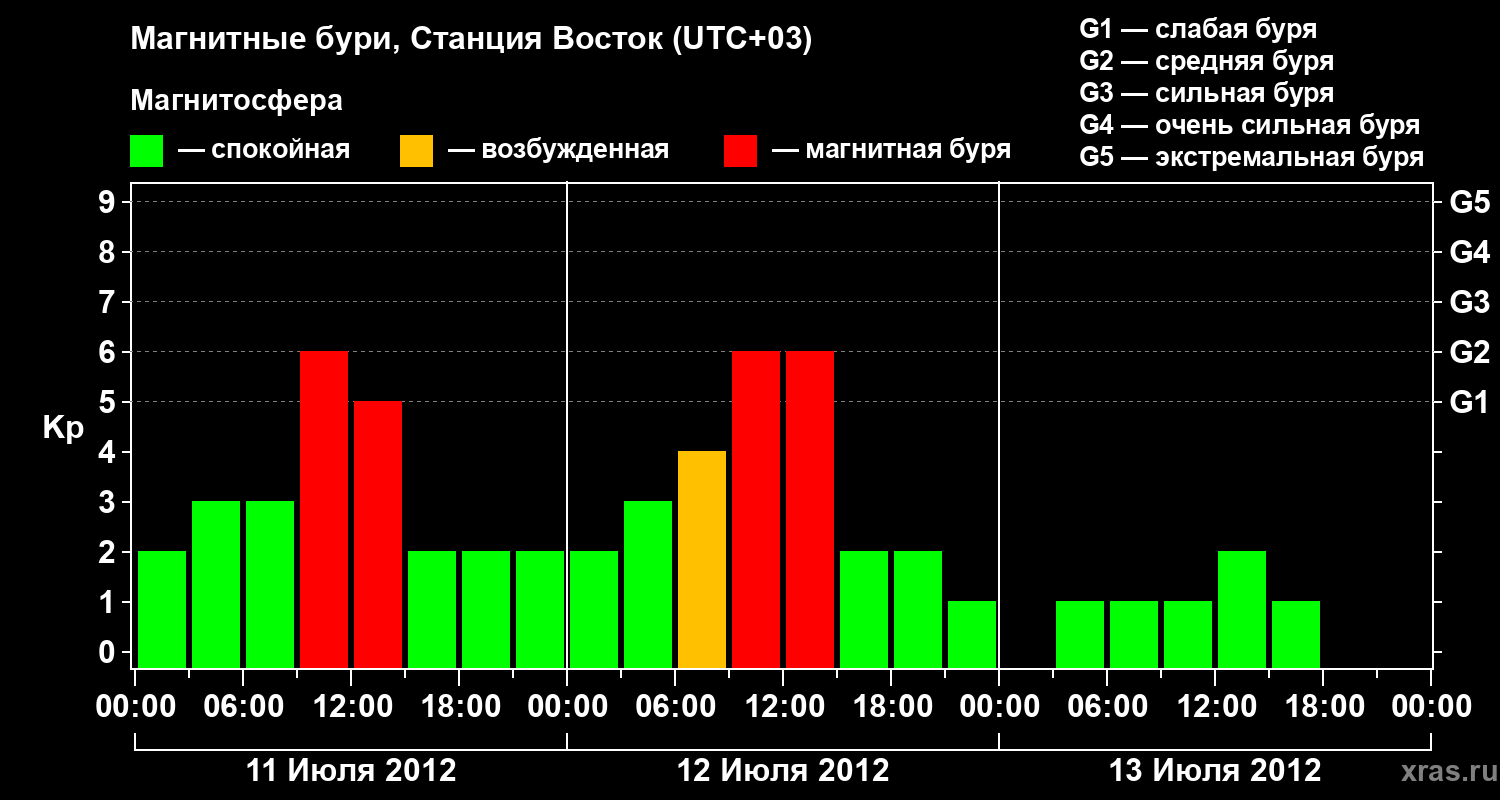 Магнитные бури локации Станция Восток — 13 июля 2012 года