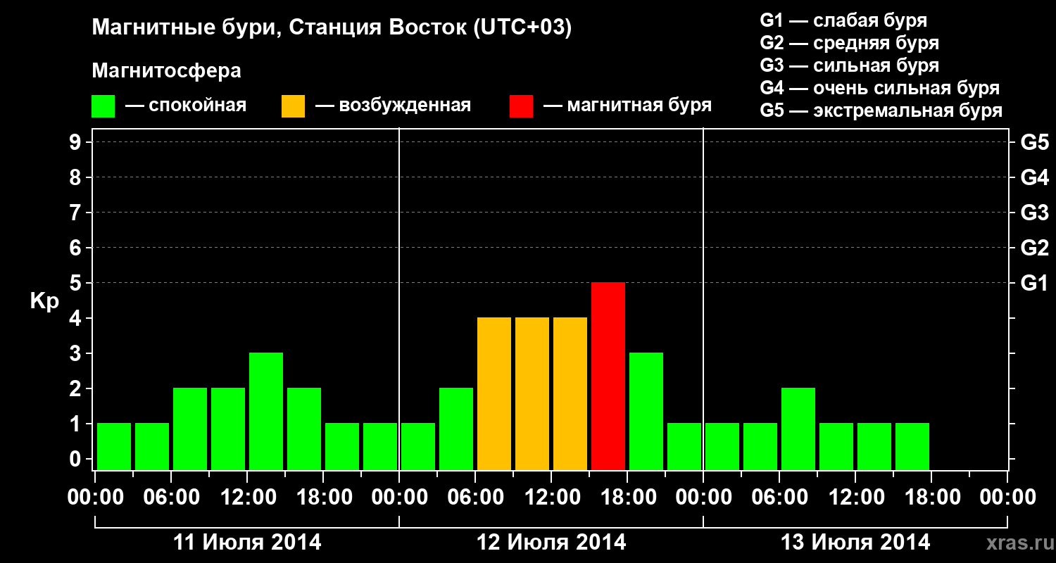 Магнитные бури локации Станция Восток — 13 июля 2014 года