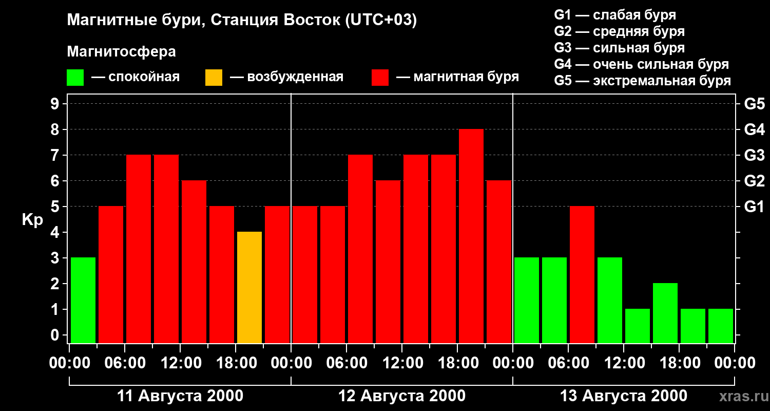 Магнитные бури локации Станция Восток — 13 августа 2000 года