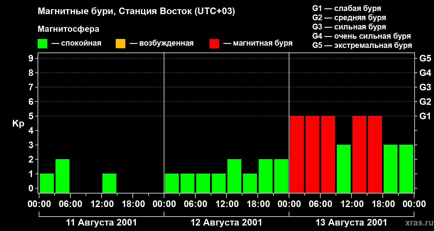Магнитные бури локации Станция Восток — 13 августа 2001 года