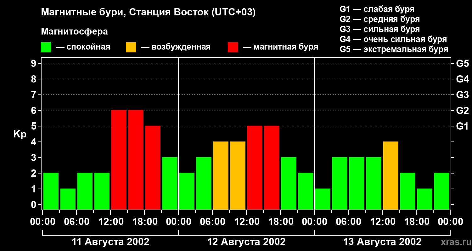 Магнитные бури локации Станция Восток — 13 августа 2002 года