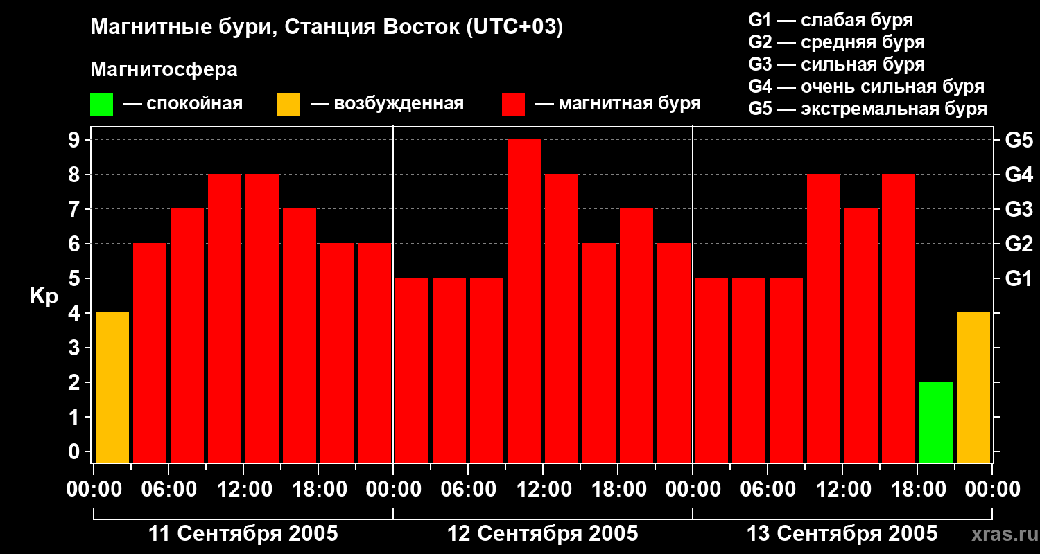 Магнитные бури локации Станция Восток — 13 сентября 2005 года