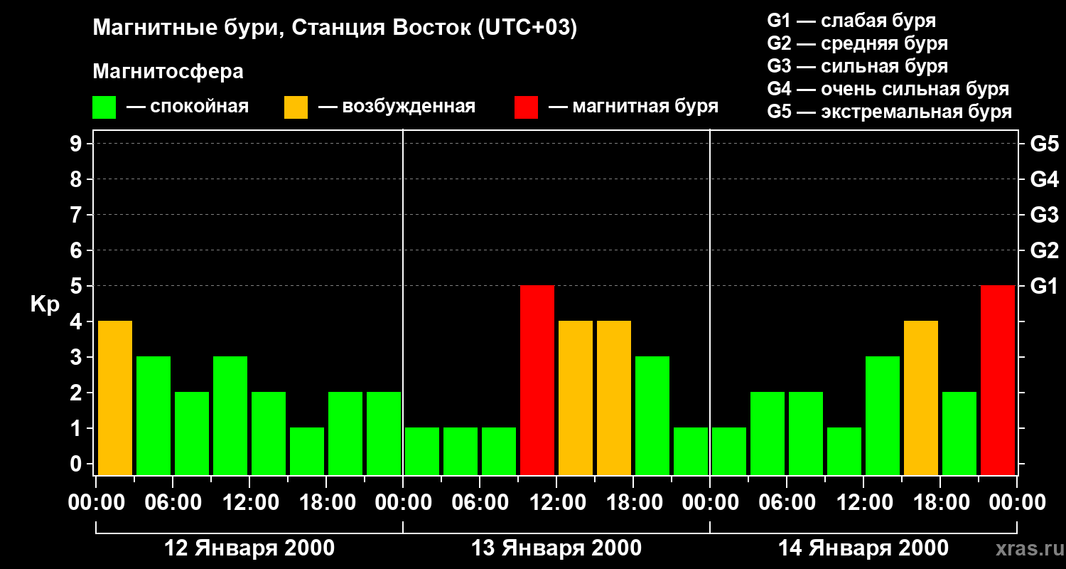 Магнитные бури локации Станция Восток — 14 января 2000 года