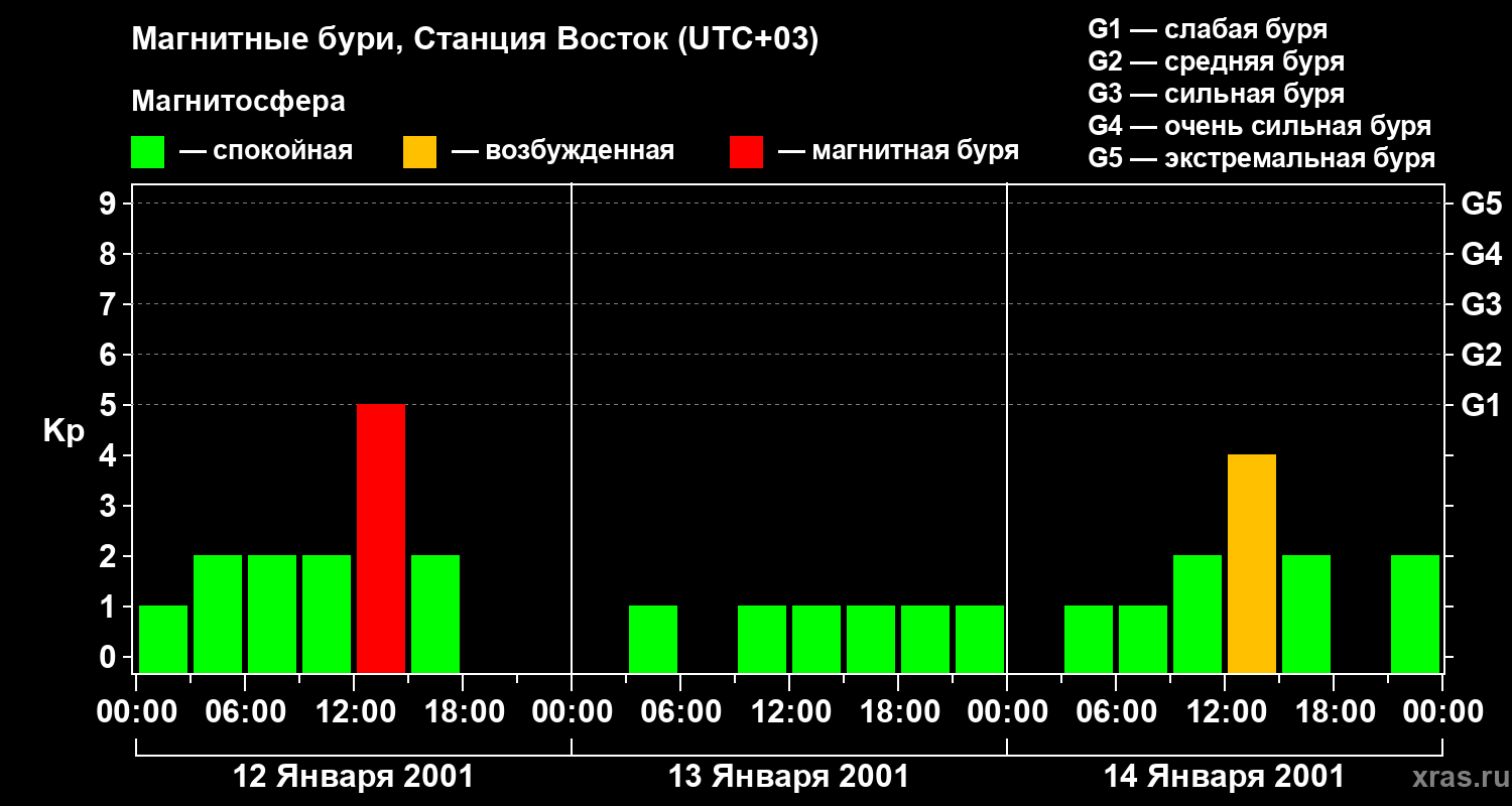 Магнитные бури локации Станция Восток — 14 января 2001 года