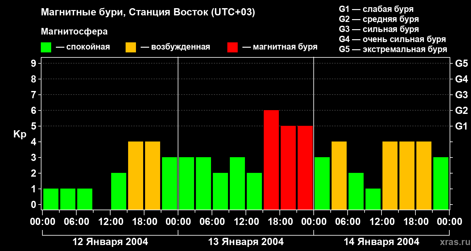 Магнитные бури локации Станция Восток — 14 января 2004 года