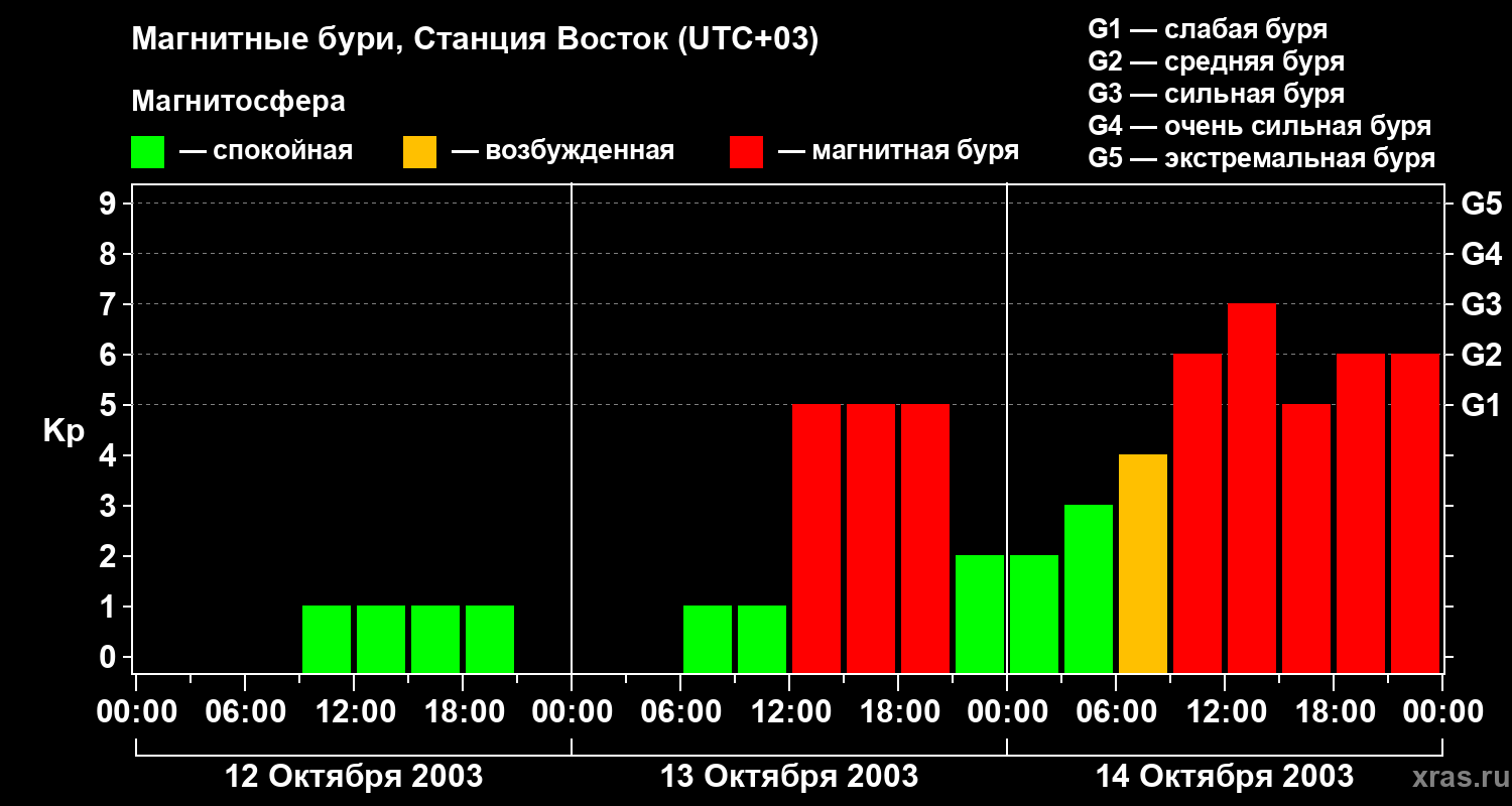Магнитные бури локации Станция Восток — 14 октября 2003 года