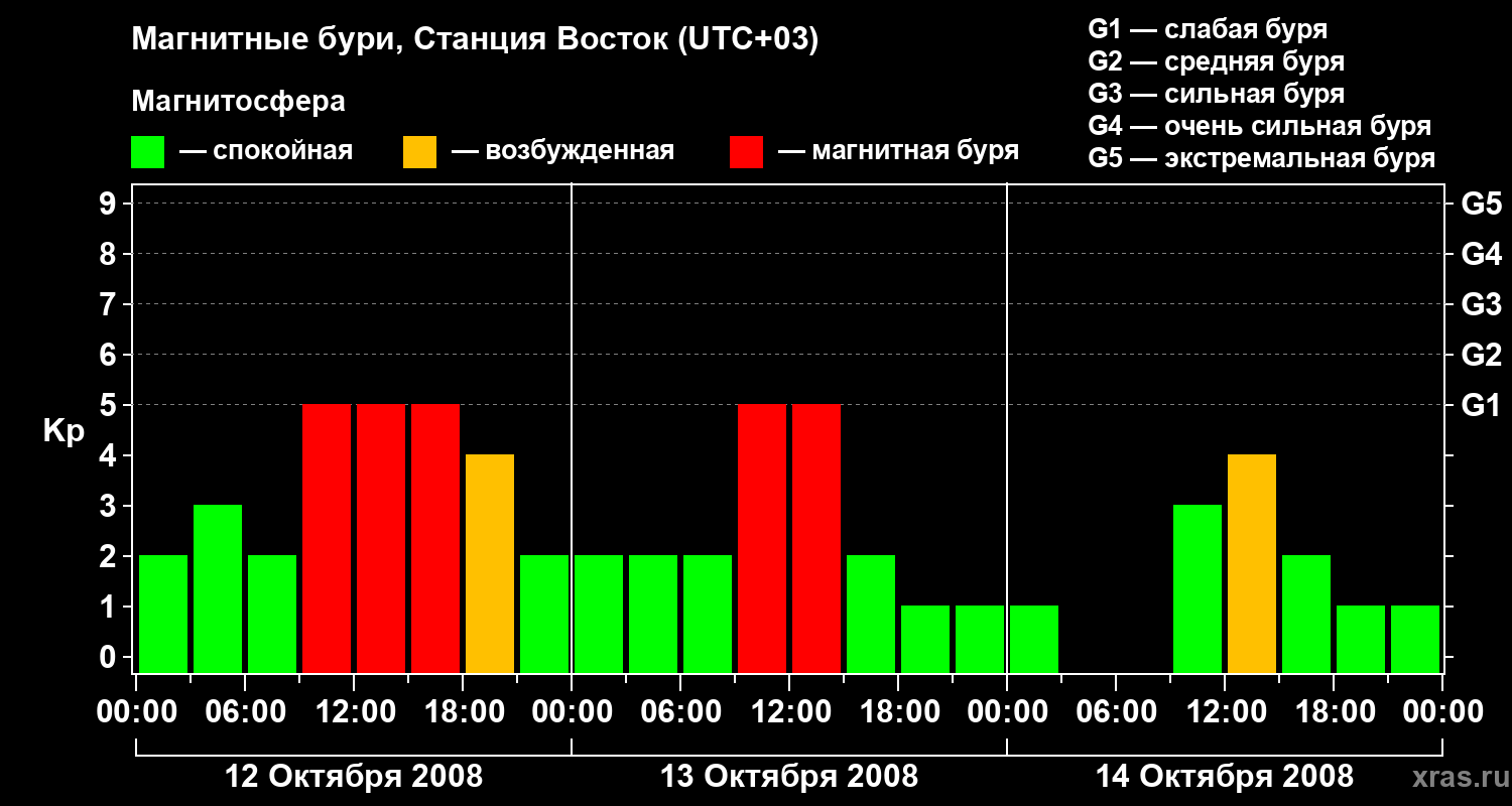 Магнитные бури локации Станция Восток 14 октября 2008 года