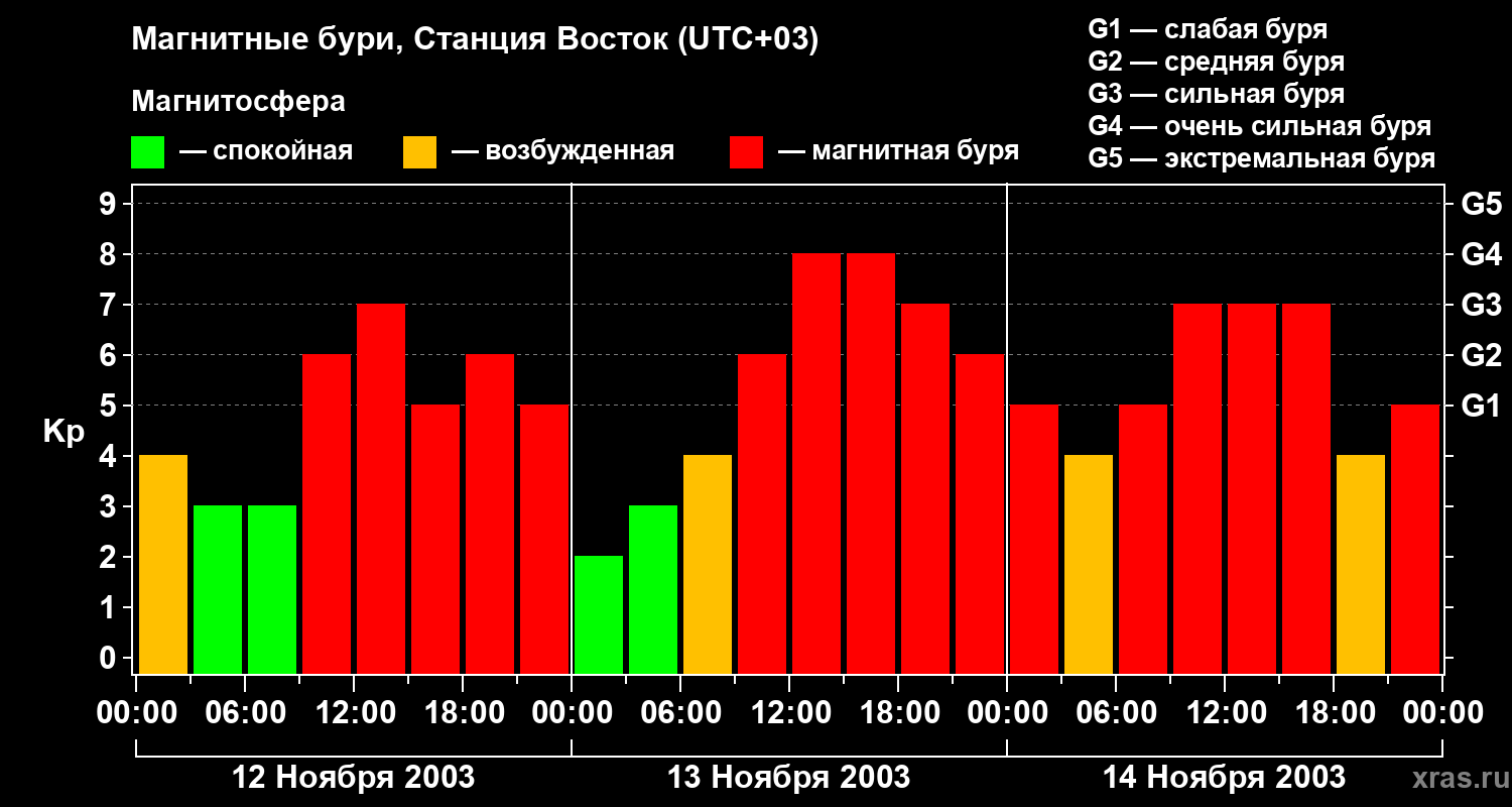 Магнитные бури локации Станция Восток 14 ноября 2003 года