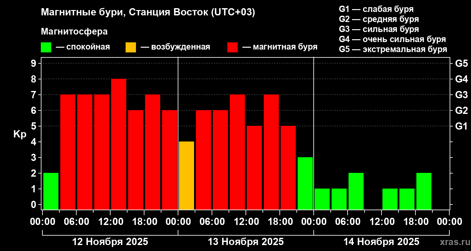 Магнитные бури локации Станция Восток 14 ноября 2025 года