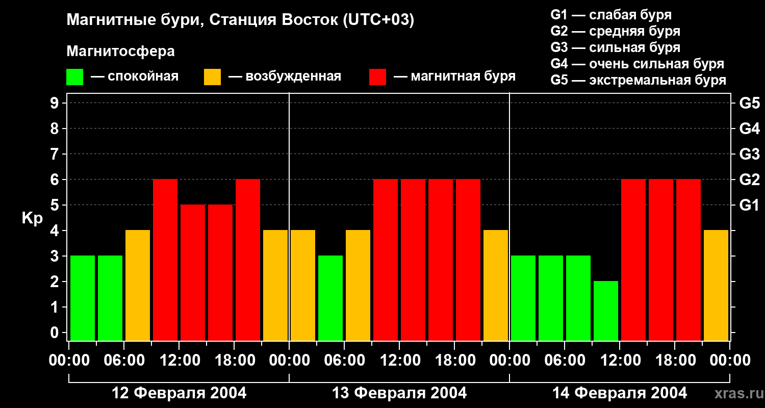 Магнитные бури локации Станция Восток — 14 февраля 2004 года