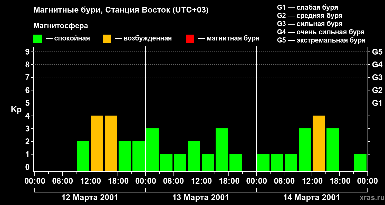 Магнитные бури локации Станция Восток — 14 марта 2001 года