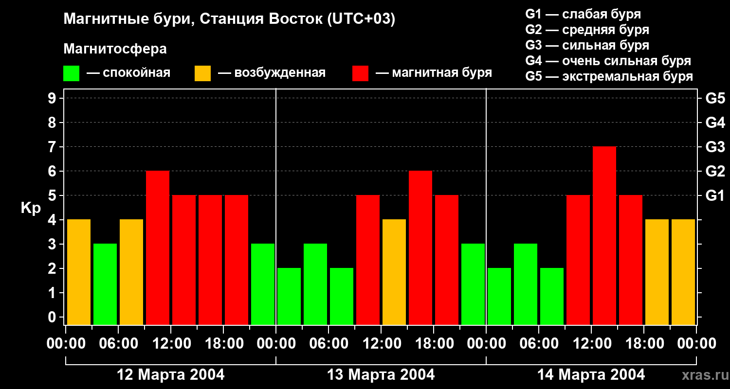 Магнитные бури локации Станция Восток — 14 марта 2004 года