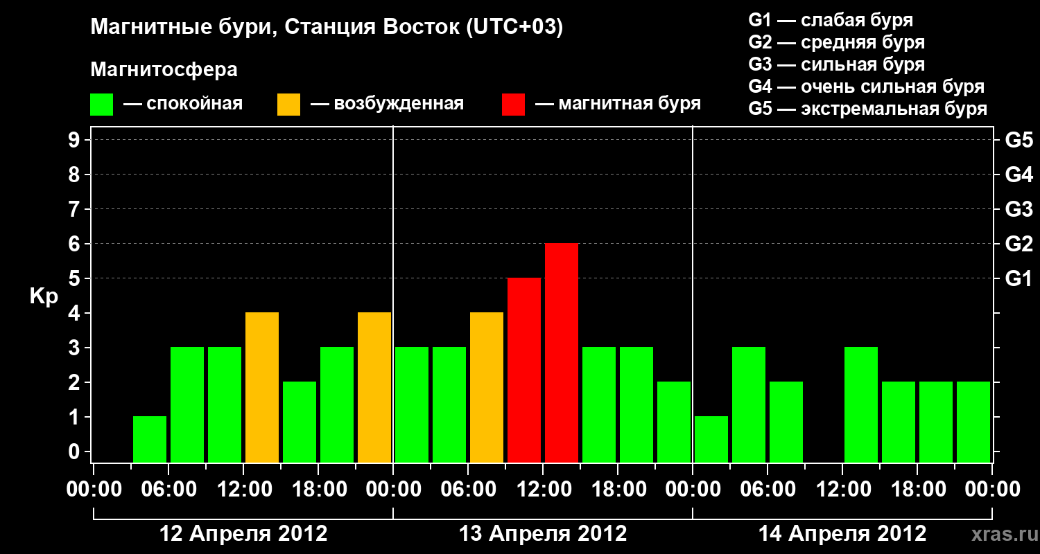 Магнитные бури локации Станция Восток — 14 апреля 2012 года