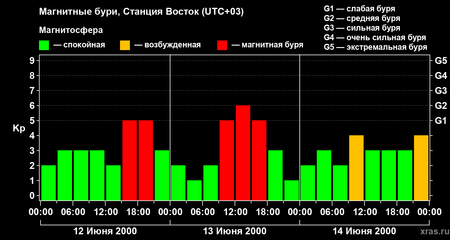 Магнитные бури локации Станция Восток — 14 июня 2000 года