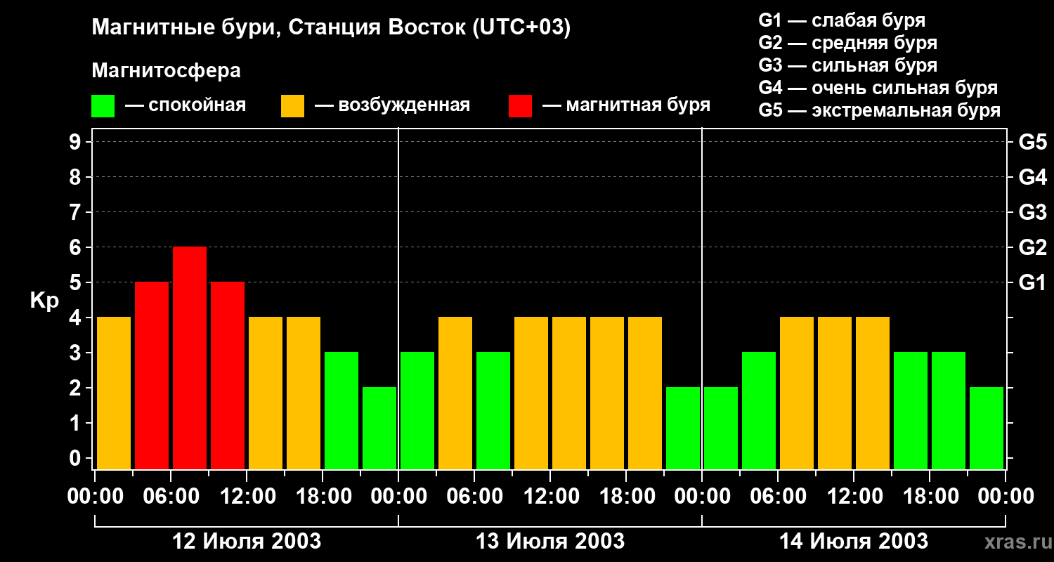 Магнитные бури локации Станция Восток — 14 июля 2003 года