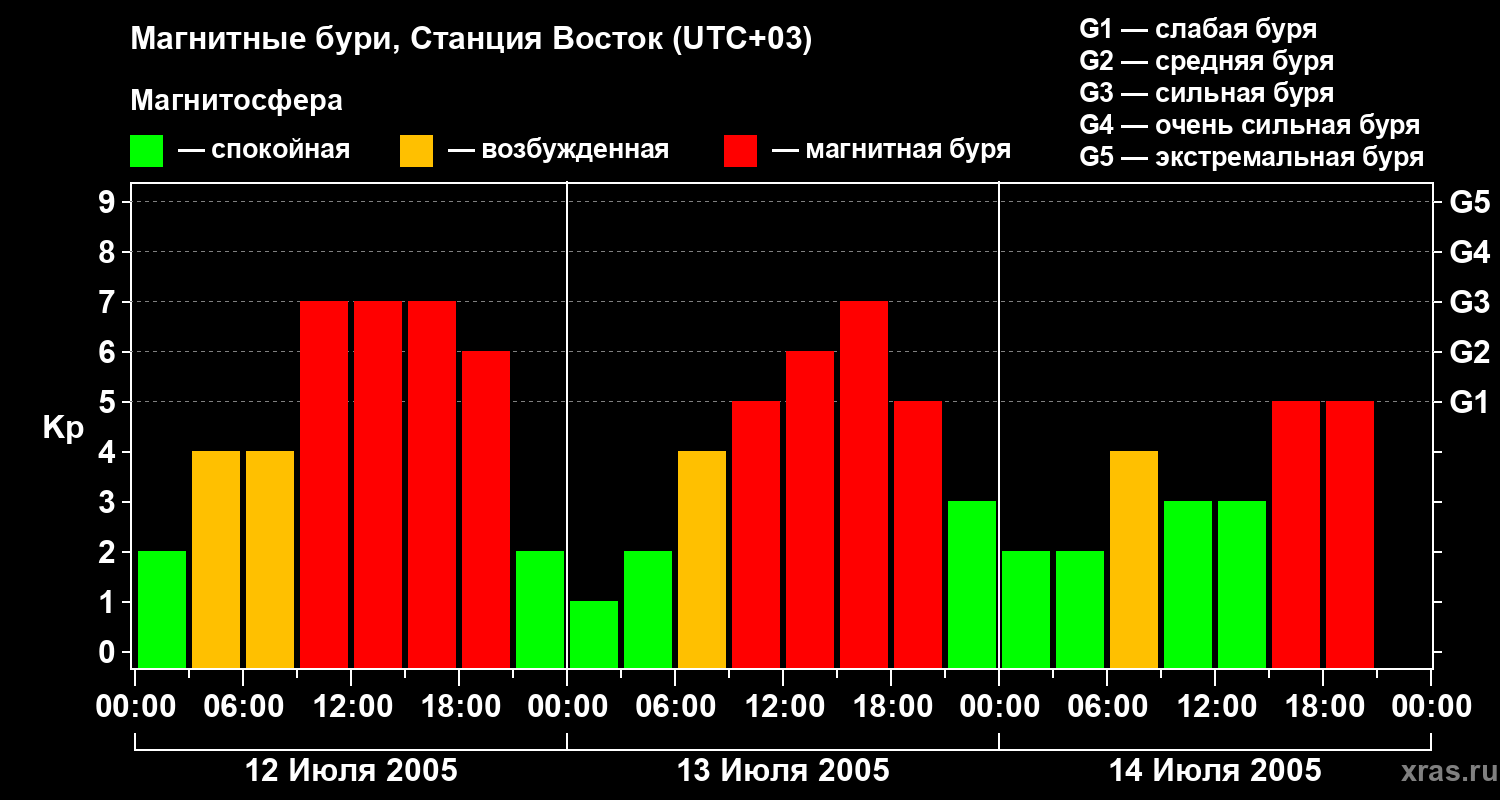 Магнитные бури локации Станция Восток — 14 июля 2005 года