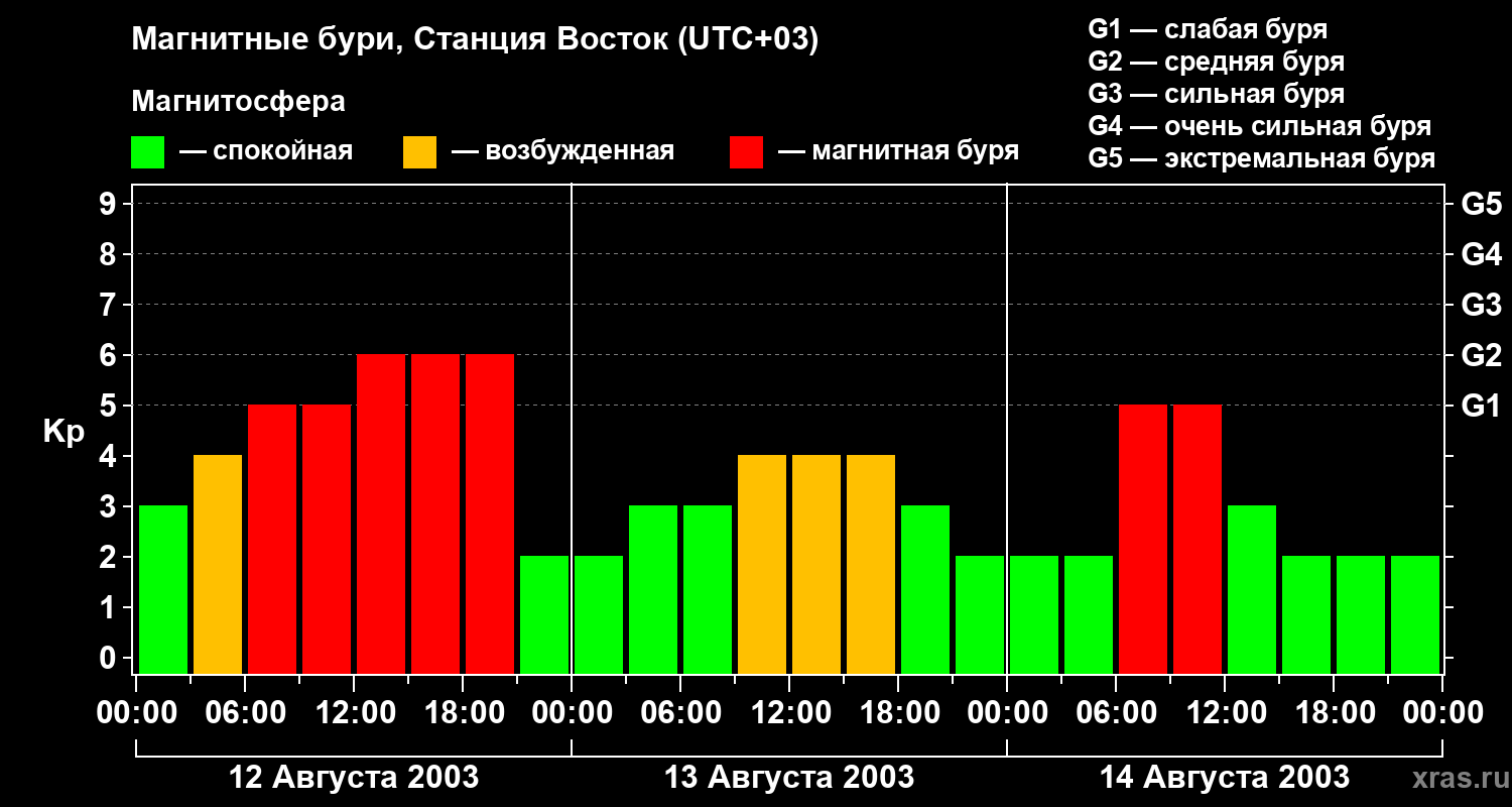 Магнитные бури локации Станция Восток — 14 августа 2003 года