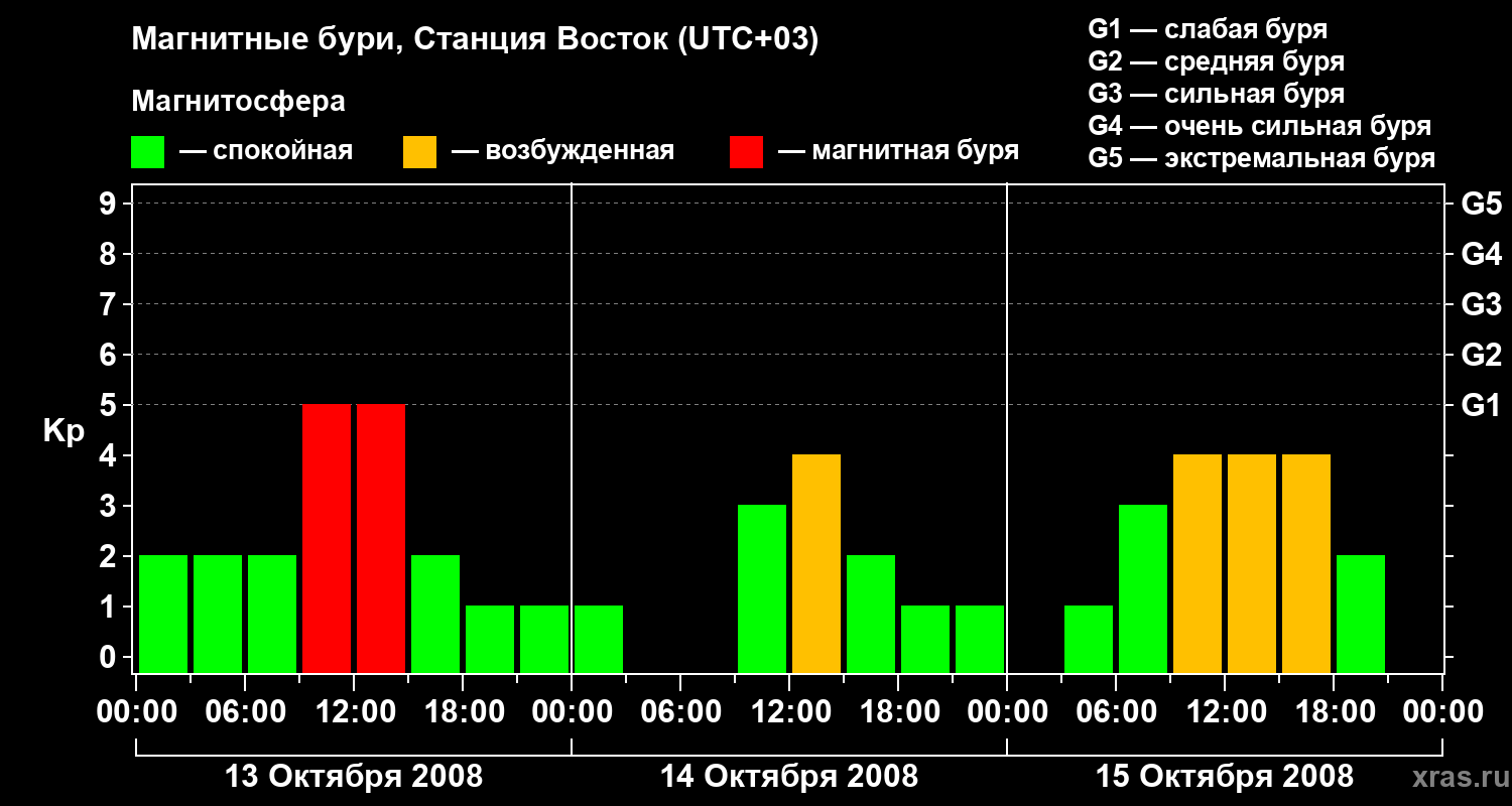 Магнитные бури локации Станция Восток 15 октября 2008 года