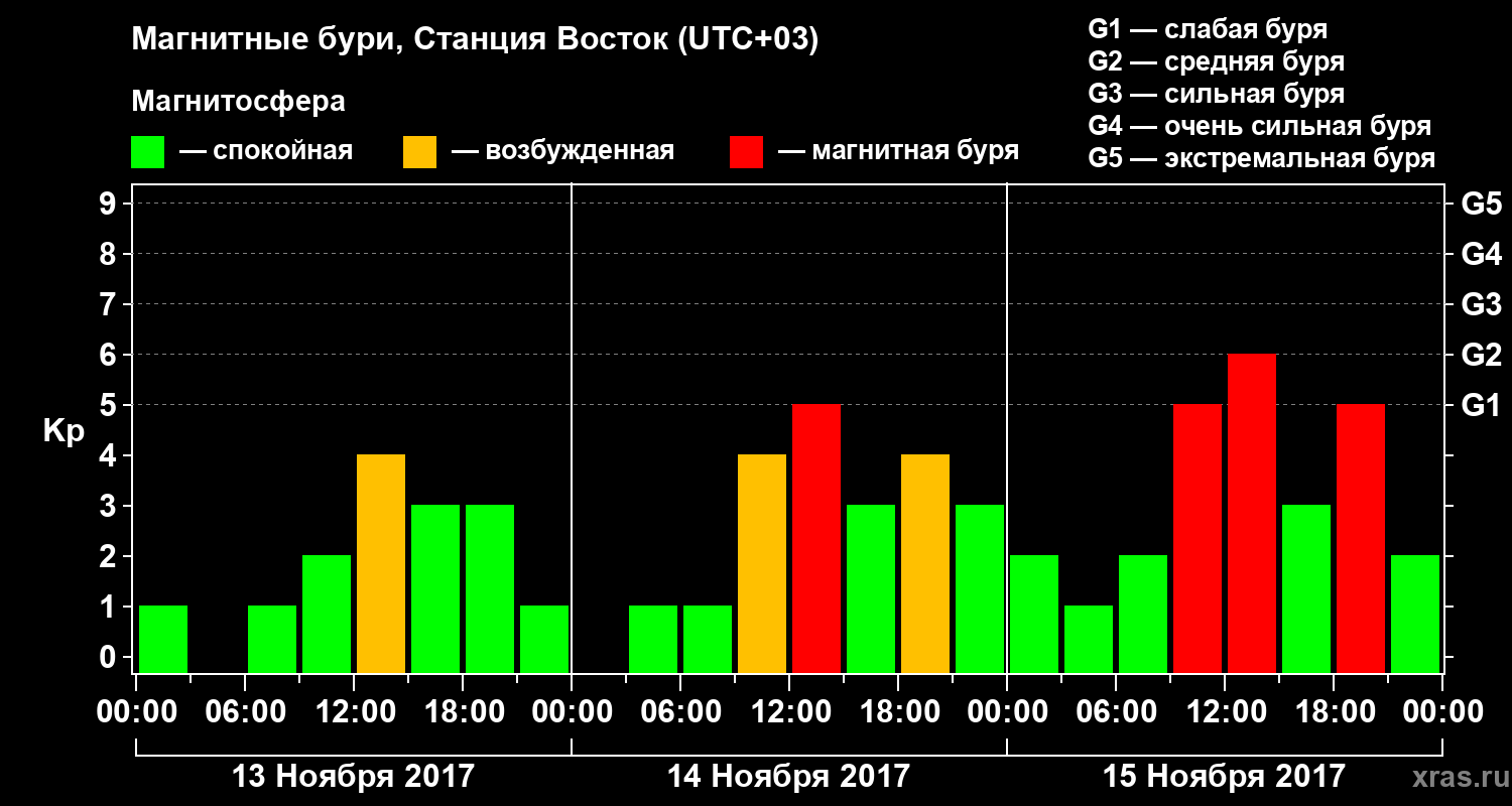 Магнитные бури локации Станция Восток — 15 ноября 2017 года