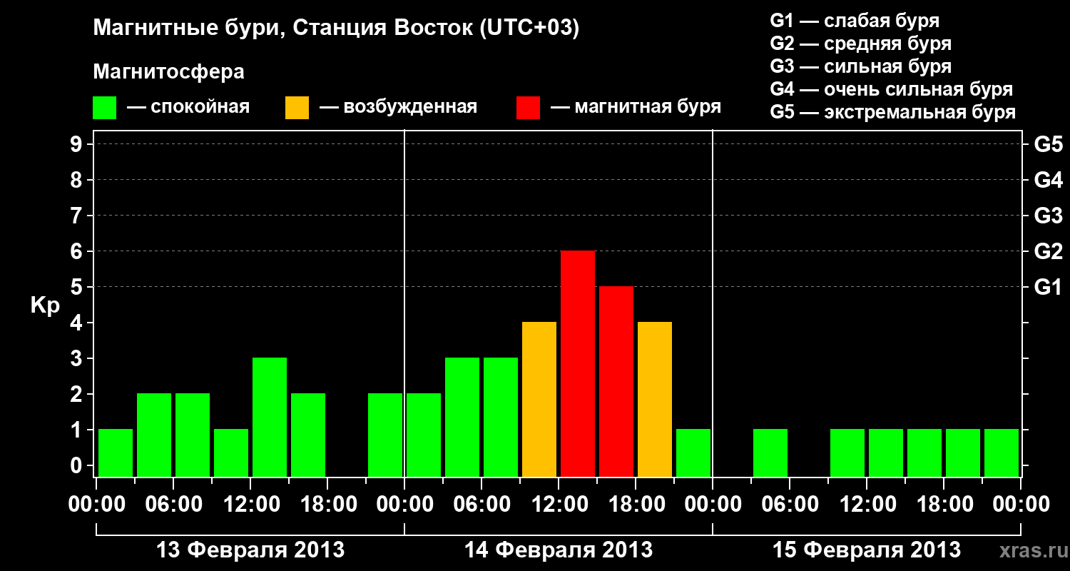 Магнитные бури локации Станция Восток — 15 февраля 2013 года