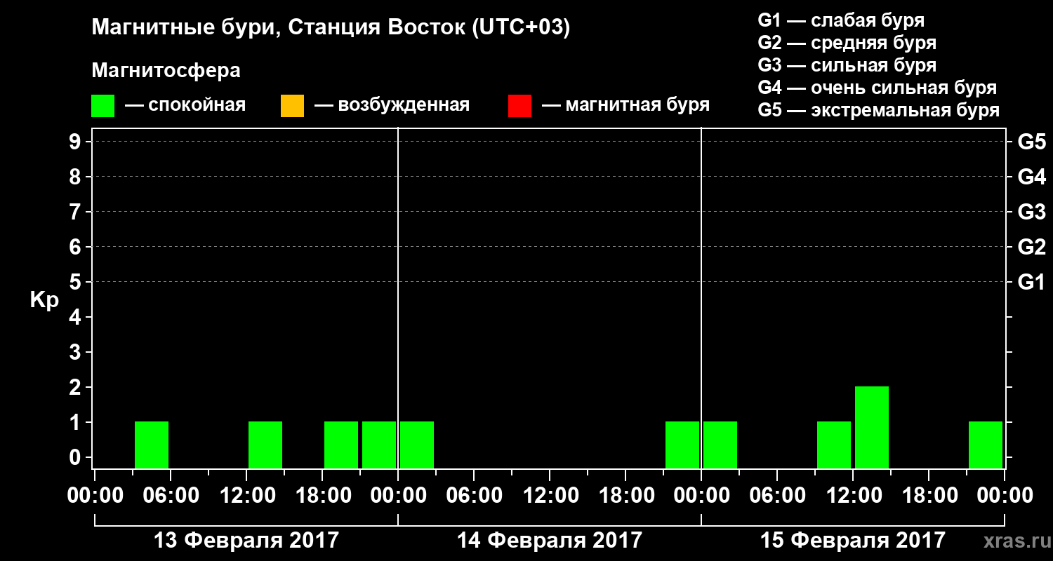 Магнитные бури локации Станция Восток — 15 февраля 2017 года