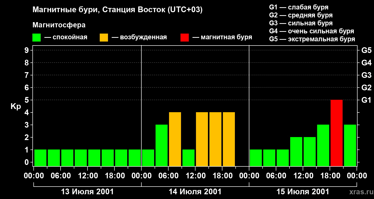 Магнитные бури локации Станция Восток — 15 июля 2001 года