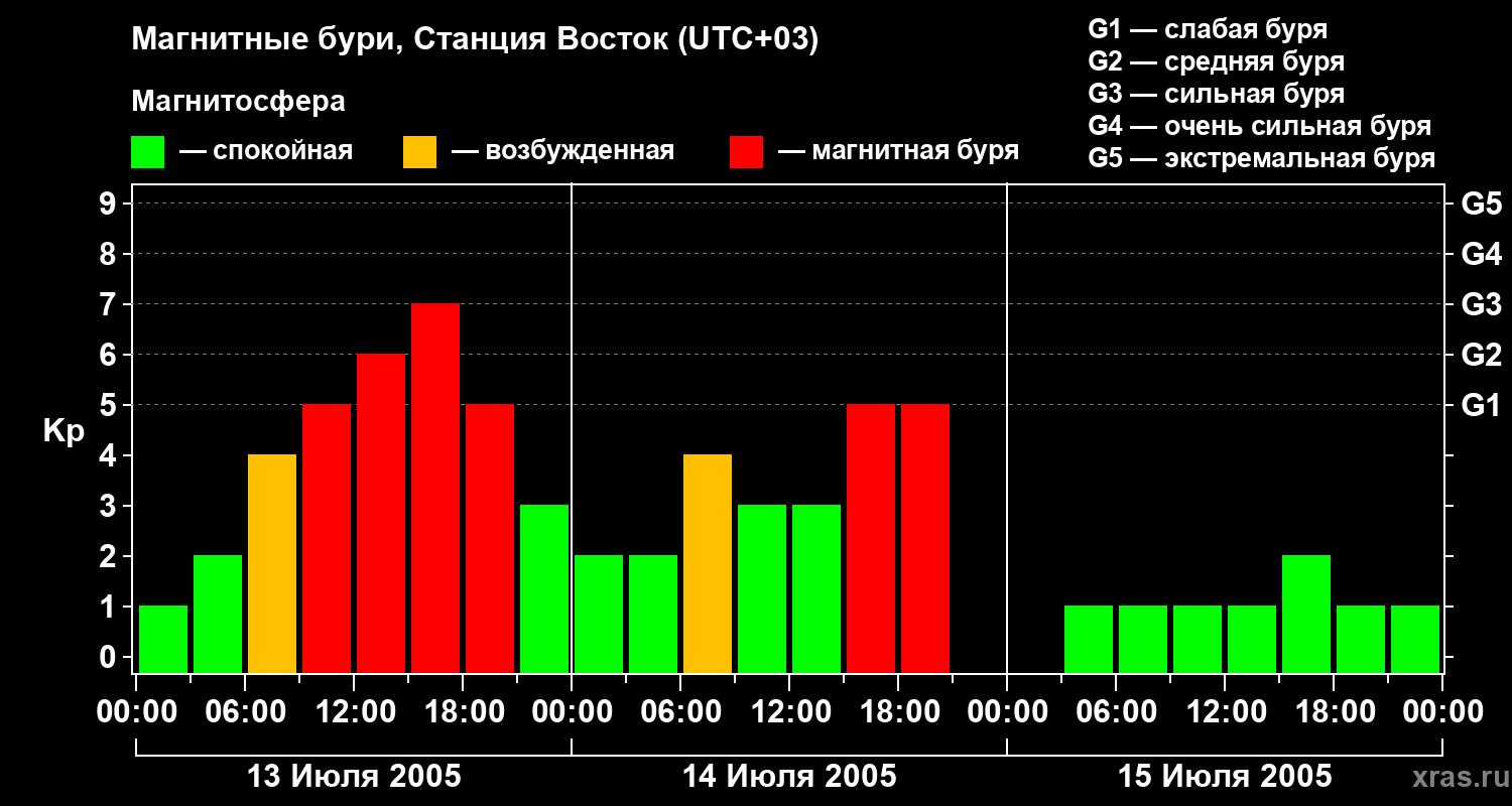 Магнитные бури локации Станция Восток — 15 июля 2005 года
